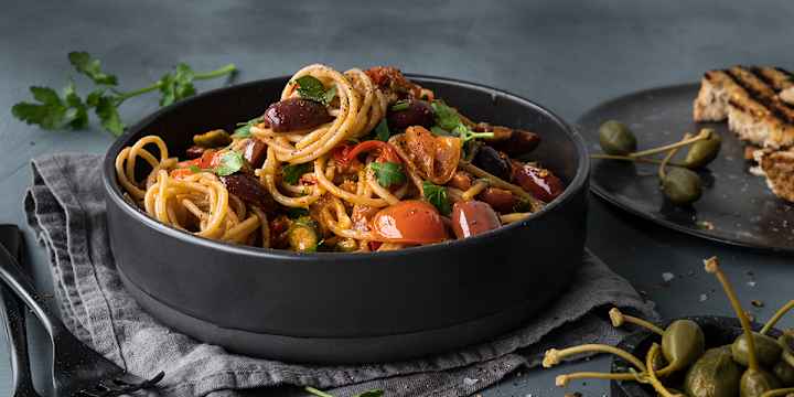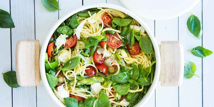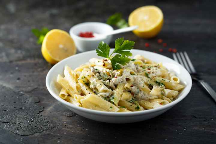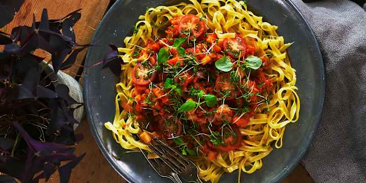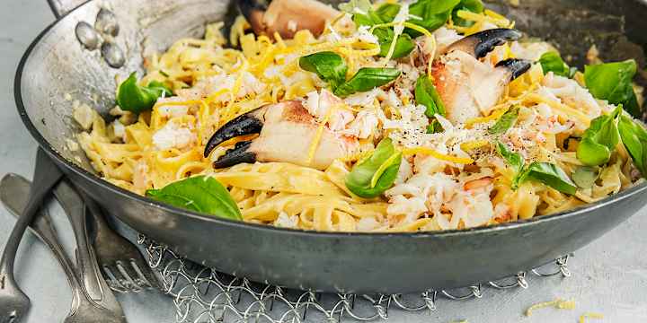 Prøv for eksempel en kremet pasta med laks, ekte pasta carbonara, hjemmelaget pasta bolognese eller vegetarlasagne!