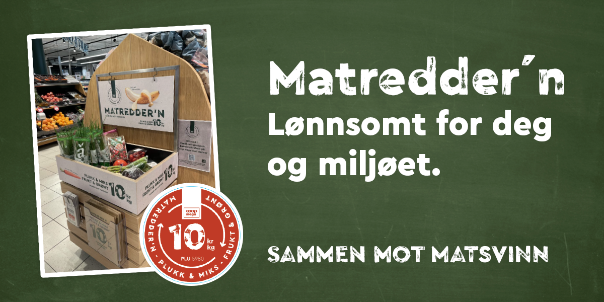 Er du litt bevisst og tar en tur innom Matredder´n når du er hos Coop Mega, sparer du penger. Det er lønnsomt for deg og for oss – og ikke minst for miljøet. Sammen for en grønnere hverdag.