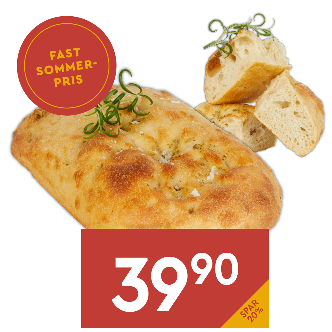 Kjør på med bakte poteter eller fries, eller gjør det enkelt med skikkelig italiensk focaccia med salt og rosmarin fra Coop. Godt som tilbehør til alt av grill- og sommermat, gjerne med aioli å dyppe brødet i.