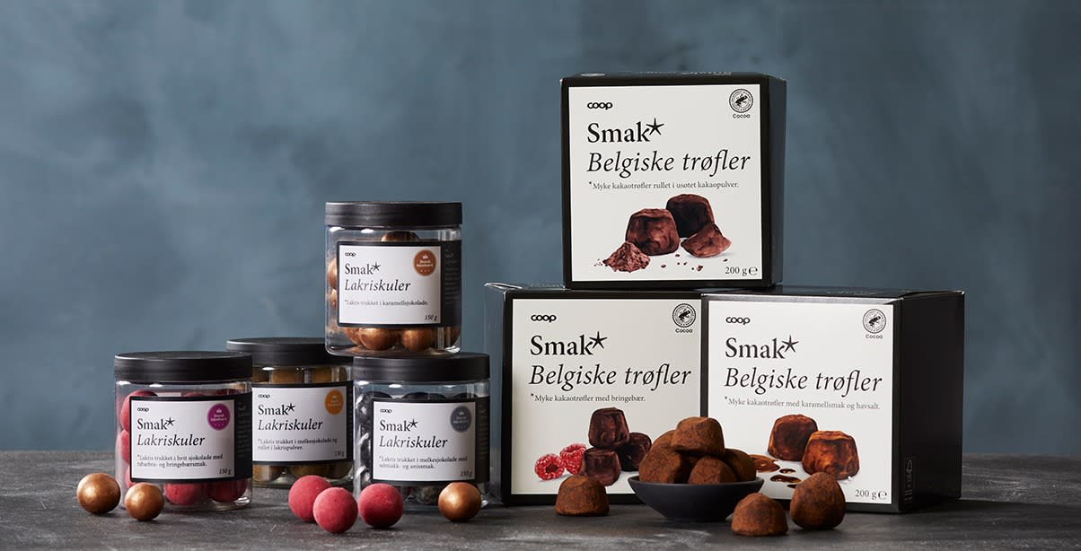 Til matentusiastenMed spiselige gaver fra Smak*, Coops premium produktserie, kan du glede matentusiasten i livet ditt. Her finner du gaveidéer for en hver smak, fra luksuriøse belgiske trøfler og kvalitetskaffe til ekte italiensk olivenolje, oliven og spekeskinke.