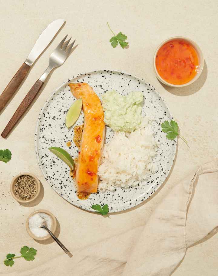 Laks med sweet chili og avokadokrem