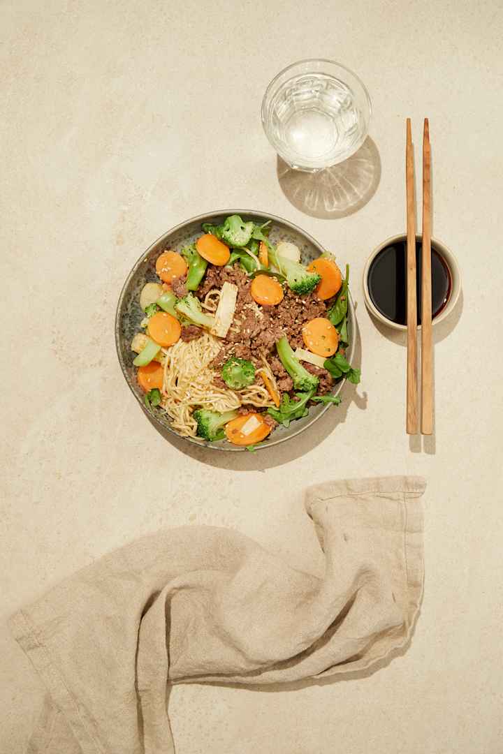 Vegetarwok med nudler