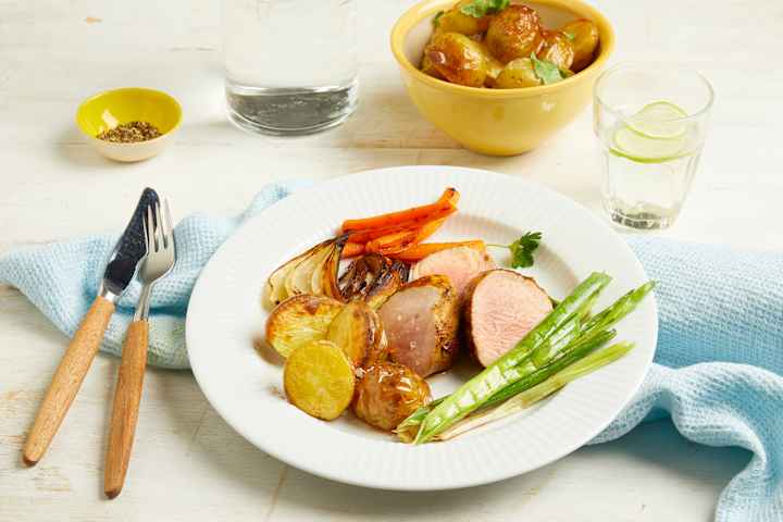 Indrefilet av svin med appelsin- og hvitløksmarinade og ovnsbakte grønnsaker