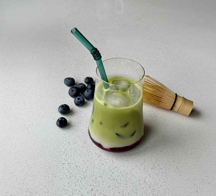 Matcha islatte med blåbærsirup