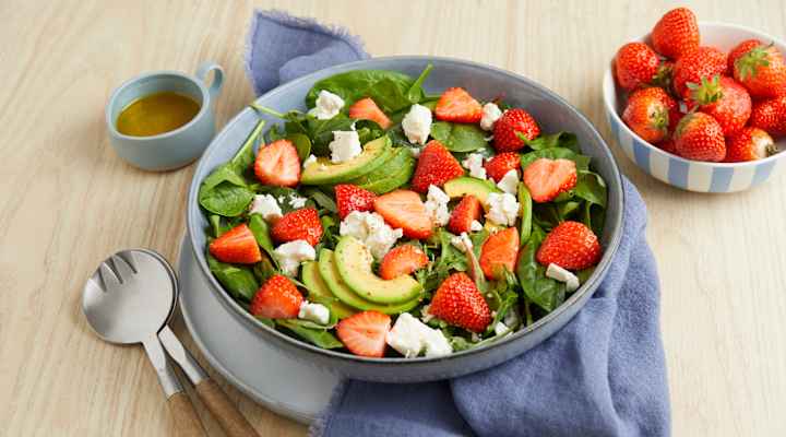 Jordbærsalat med fetaost og sitronvinaigrette