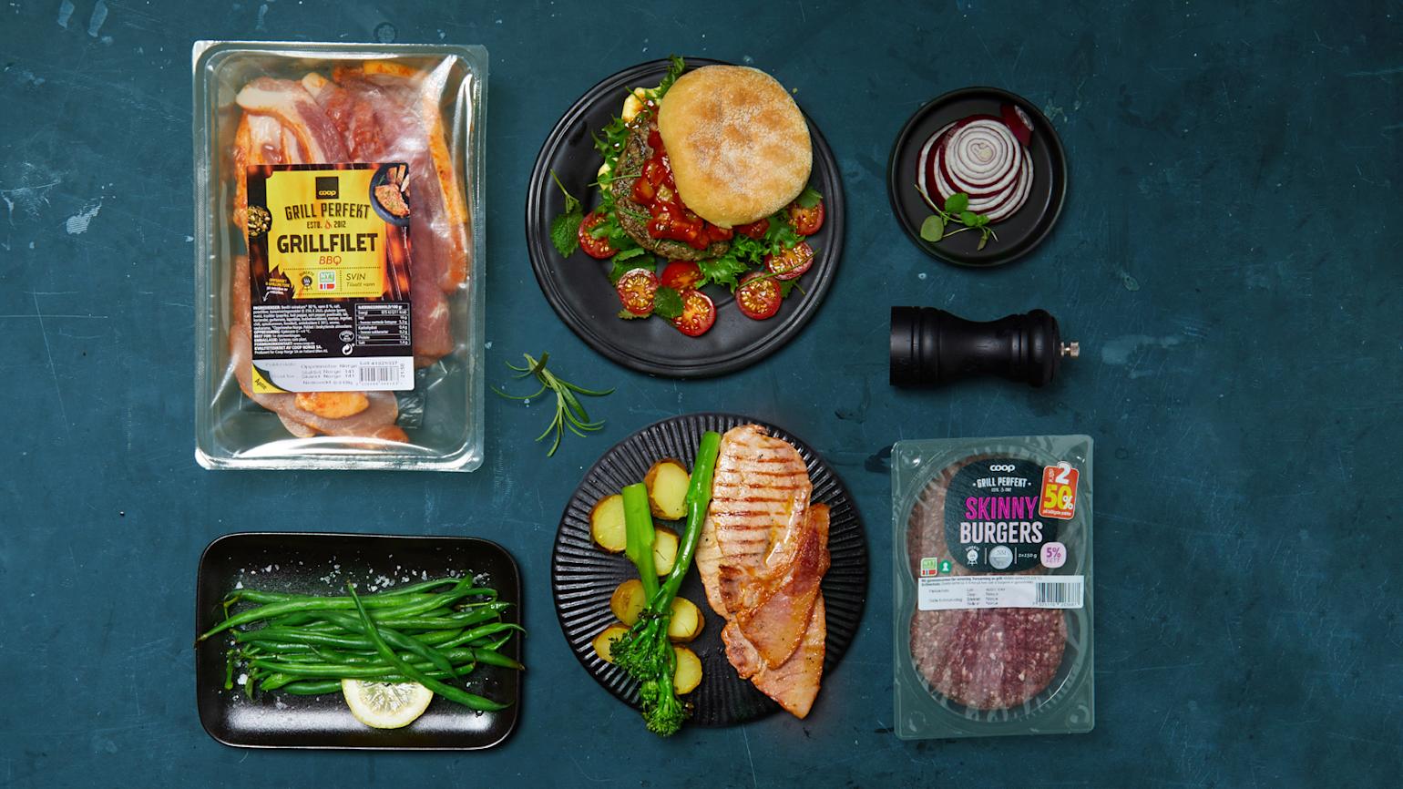 Her finner du alt du trenger til grillsommeren; fra pølser og burgere, til laks, grillspyd med kylling, spareribs, maiskolber, bakepotet og mye mye mer!