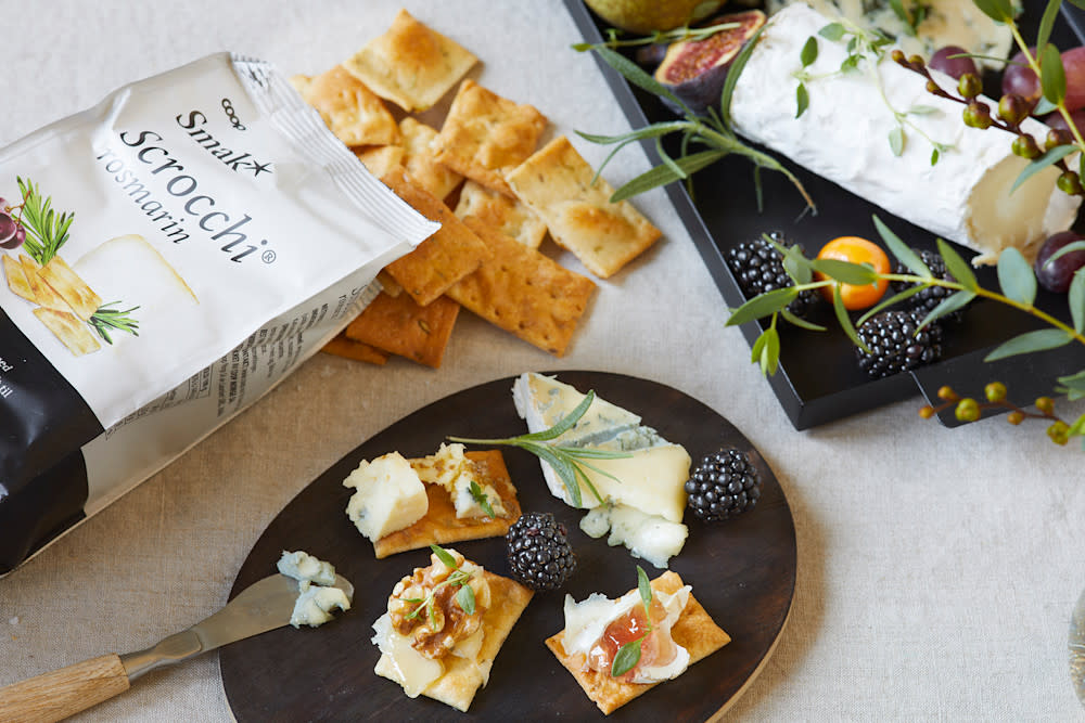 Nå har Smak* gjort det enda enklere å lykkes med ostefatet, og nyhetene Scrocchi rosmarin, og Scrocchi sesam & valmuefrø, er lansert nettopp med ostefatet i tankene. Kjeksene er både sprø og lette, og perfekte til ostefatets mange oster.