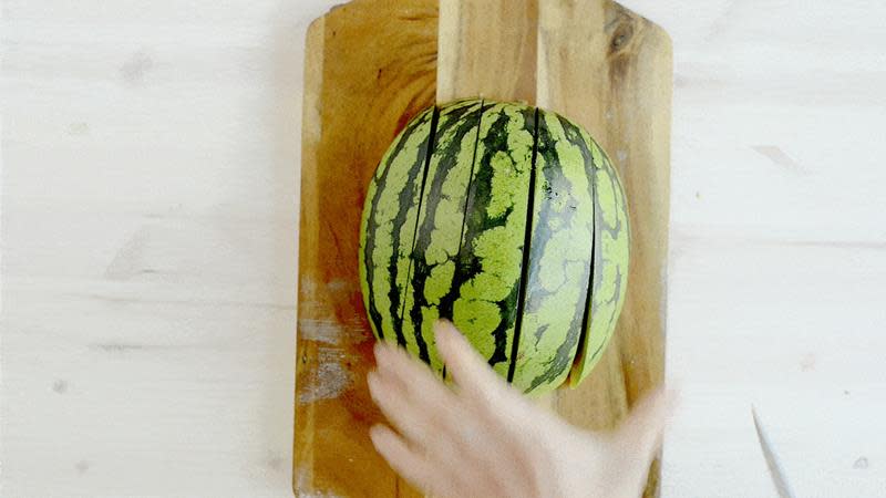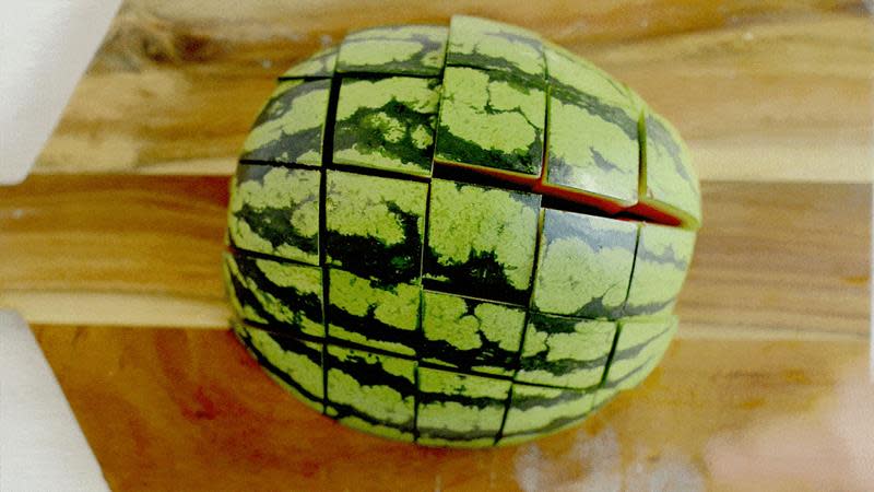 Del vannmelonen på tvers slik at du får et firkantet mønster.