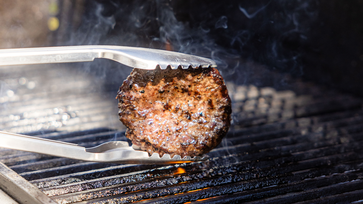 - Når kjøttsaften begynner å piple opp på oversiden er det tid for å snu. Hvis burgeren sitter fast når du prøver å snu den, er den ikke klar.
