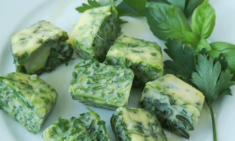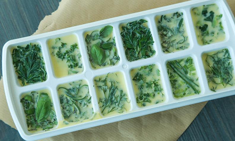 Det eneste du trenger for å gi «evig liv» til urtene, er en isbitform, olivenolje og en fryser. Du hakker opp urtene, og legger dem i isbitformen sammen med olivenolje. Det er så lett som bare det!