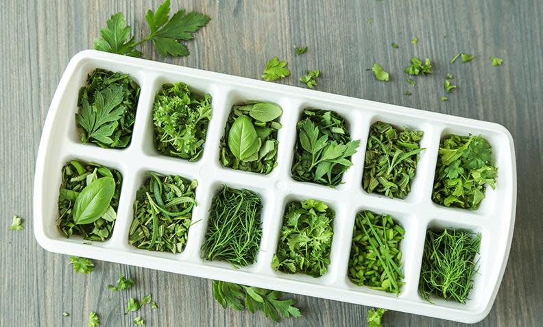Det er flere måter å fryse ned urter på. Du kan for eksempel fryse dem ned «au naturel» i en frysepose eller opphakket i isbitform sammen med vann, eller olivenolje.