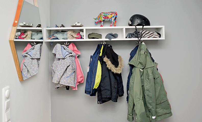 Yttertøy og sko skal tas av og på, og luer, skjerf og votter skal legges fra seg. Treningssekker og vesker velter inn, og alle mulige småting som nøkler, sykkelhjelmer og post skal ha sin plass.