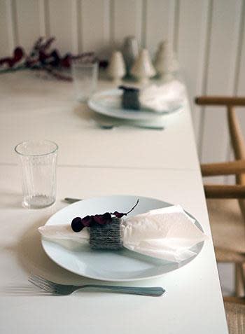 5. Dekorer gjerne serviettringen med en liten blomst eller litt granbar ved servering.
