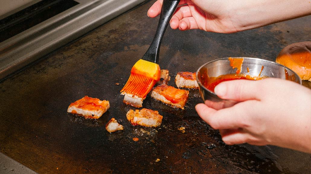 – Ribberester er enkle å tilberede. Vi stekte kjøttet på høy varme for å få en sprø overflate, mens innsiden forble saftig og mør. Barbecue-sausen som pensles på underveis tilfører masse smak, og den passet utrolig bra med ribba.