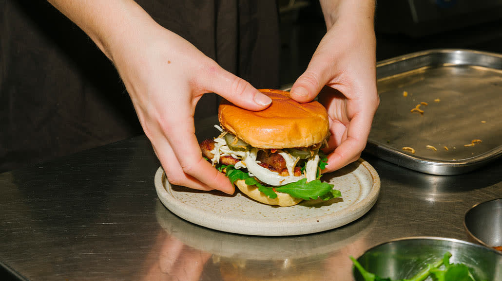 I ekte Løkka Deli-ånd falt valget naturlig på en burger. Dette gjorde det mulig å bruke råvarer de allerede hadde tilgjengelig, samtidig som det ga retten det unike Løkka Deli-preget. Se oppskriften her!