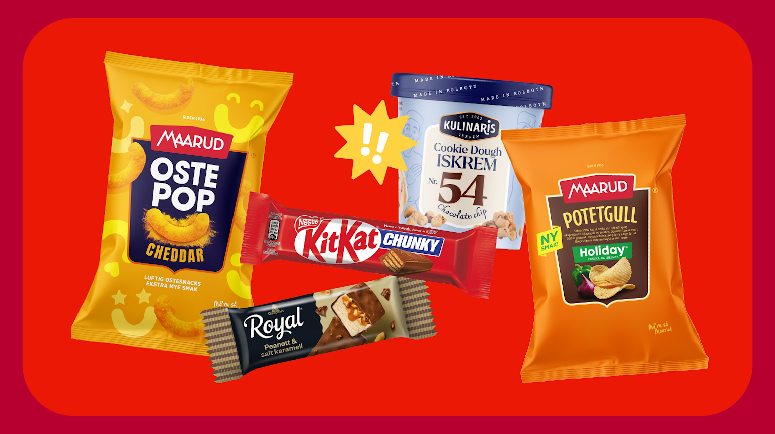 På snacksfronten finner du Maarud Ostepop Extra Store Cheddar, en luftig ostesnacks med ekstra mye smak, og Maarud Potetgull Holiday, inspirert av smaken vi kjenner fra folkefavoritten “holiday dip”.