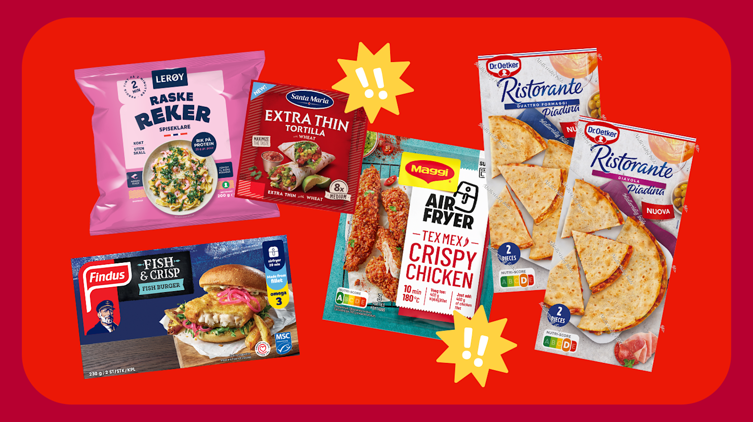 Frister det med noe som smaker litt ekstra, har Dr. Oetker hentet street food-inspirasjon fra Italia og lanserer nå Dr. Oetker Ristorante Piadina i smakene Diavola og Quattro. Til tacoen kan vi by på Santa Maria Tortilla Extra Thin Medium, en tynnere tortilla, som gir plass til mer fyll og mer smak. Og er det airfryeren som gjelder, får du helsprø Tex-Mex på rekordtid med Maggi Airfryer Crispy Chicken Tex Mex.