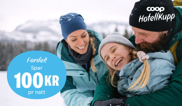 Med vårt store vintersalg kan du planlegge en herlig hotellferie til en ekstra god pris. Du får nå 100 kr rabatt per natt* på opphold på minimum 2 netter på et godt utvalg hoteller i Norge og Sverige. Tilbudet varer til 8. februar, men oppholdet kan finne sted frem til 31. desember – så du har god tid på deg til å planlegge drømmeferien! Alt du trenger å gjøre er å legge inn koden VINTERSALG i kassen.