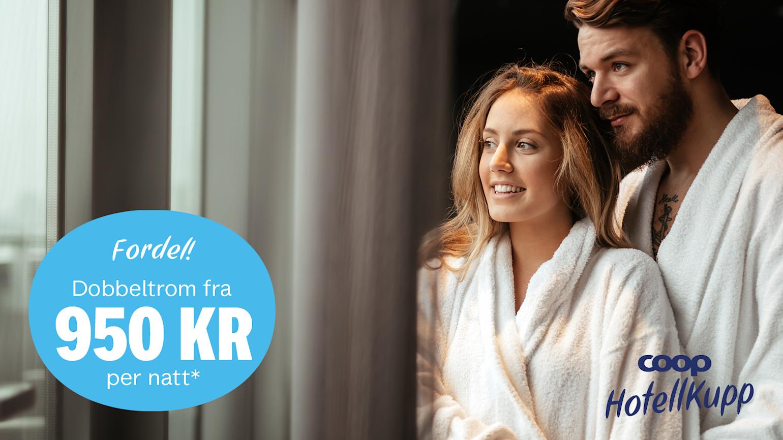 Unn deg et hyggelig hotellopphold med en du er glad i. Med Coop Hotellkupp får dere dobbeltrom fra kun 950 kr natten!* Perfekt for å senke skuldrene og nyte litt kvalitetstid sammen.