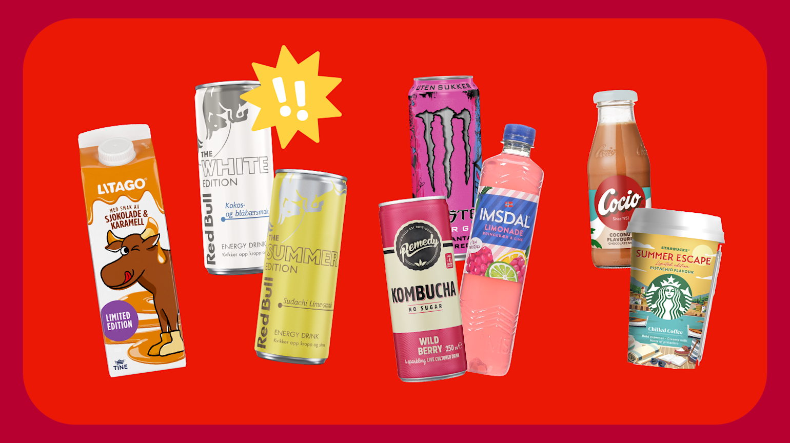 Det kommer også flere nyheter for deg som liker energidrikker. Hva med å prøve Monster Ultra Ruby Red, Red Bull Summer eller Red Bull White når du vil ha noe kaldt og oppkvikkende på farta? Liker du best å få energien din gjennom kaffedrikker, er Starbucks Summer Escape en spennende nyhet med smak av blant annet pistasj.