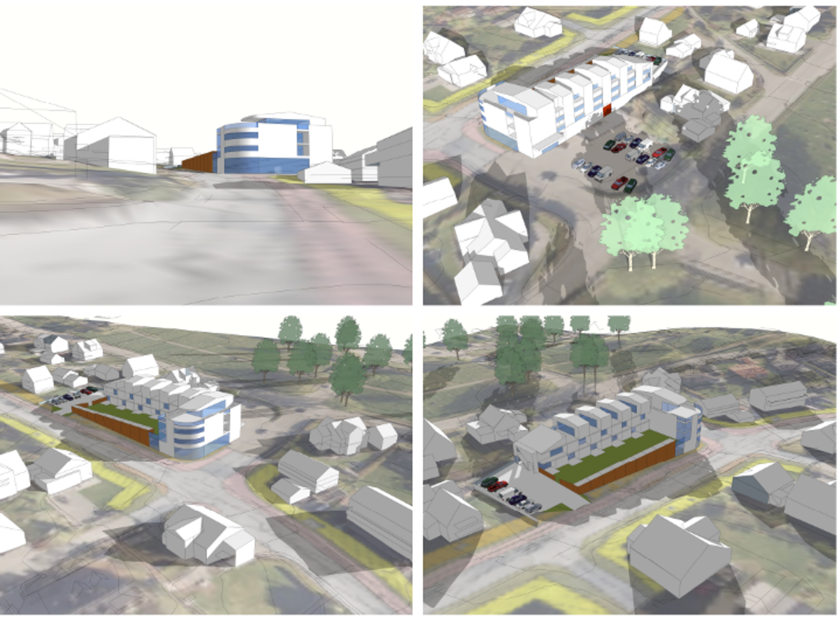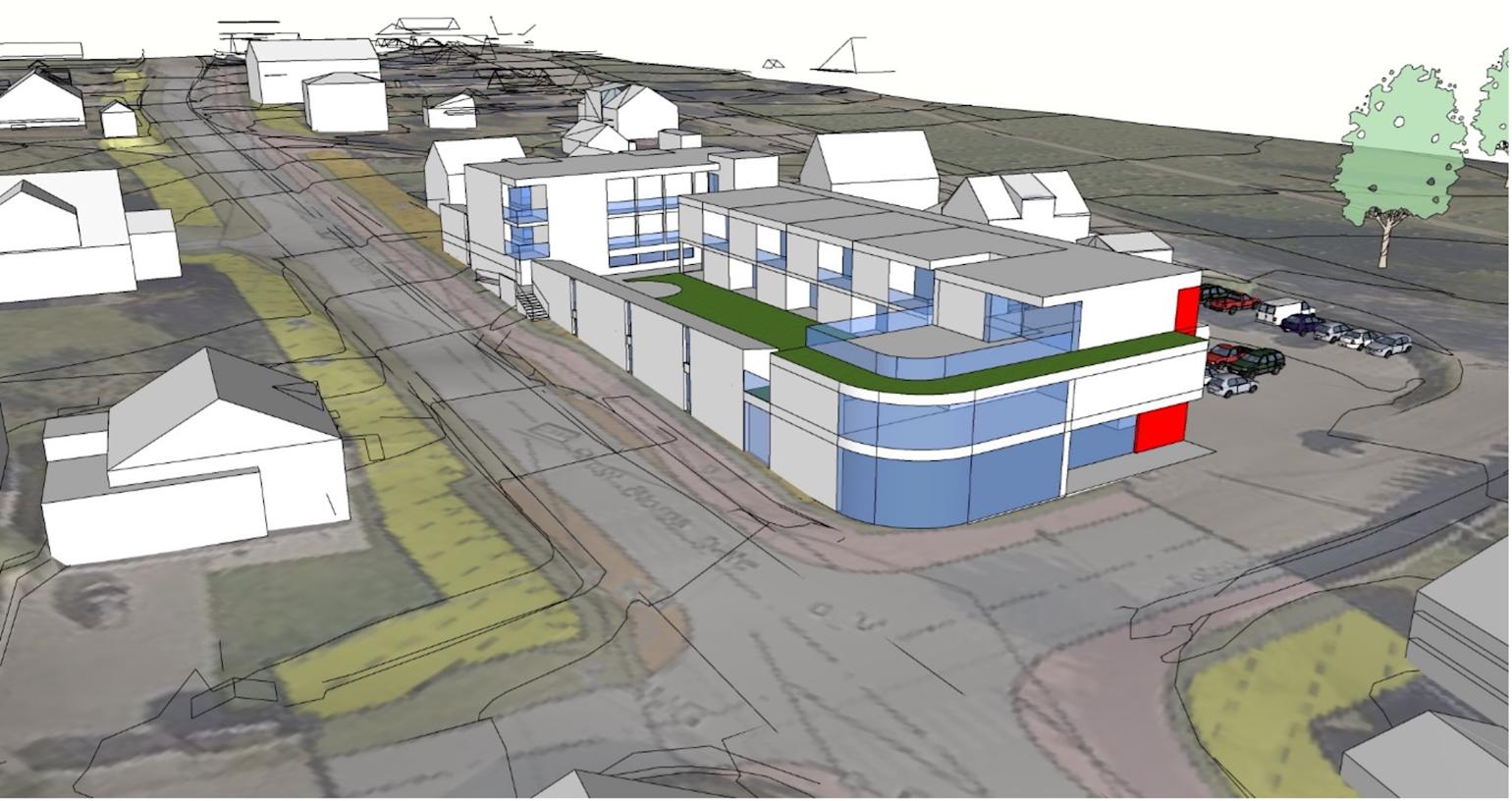 Coop Norge Eiendom AS har under utvikling et kombinert næring- og boligbygg, som tilpasser seg omkringliggende villa bebyggelse.