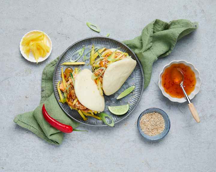 Wraps med andeconfit, ovnsbakte grønnsaker og klementinchutney