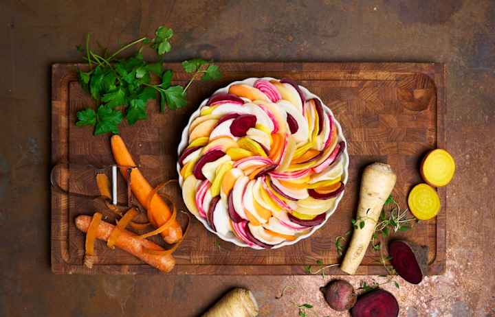 Oppdag en verden av smak med rotgrønnsaker som gulerot, kålrabi, beter, jordskokk, pastinak, reddike og sellerirot! Utforsk inspirerende oppskrifter på rotgrønnsaker i ovn og stekte rotgrønnsaker som vil forvandle dine måltider. Fra sprø og smakfulle til myke og aromatiske, finn din nye favoritt og nyt de sunne, næringsrike rettene. La rotgrønnsakene skinne på tallerkenen din!