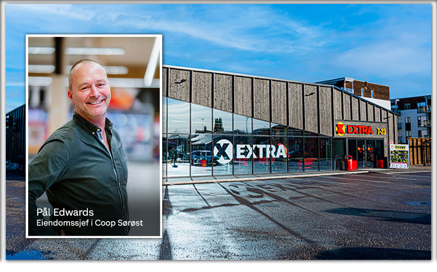 Selve butikken er bygget i heltre og er utstyrt med et solcelleanlegg på taket. Dette reduserer klimautslippene fra selve bygget med 40 prosent og gir et svært godt inneklima, sier Pål Edwards, eiendomssjef i Coop Sørøst.