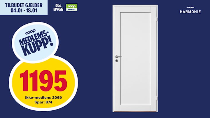 MedlemskuppHarmonie Line 1-speil massiv innerdør